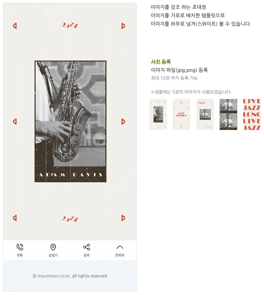 셀프 만들기와 동시에 모바일 초대장이 실시간 자동 완성 됩니다.