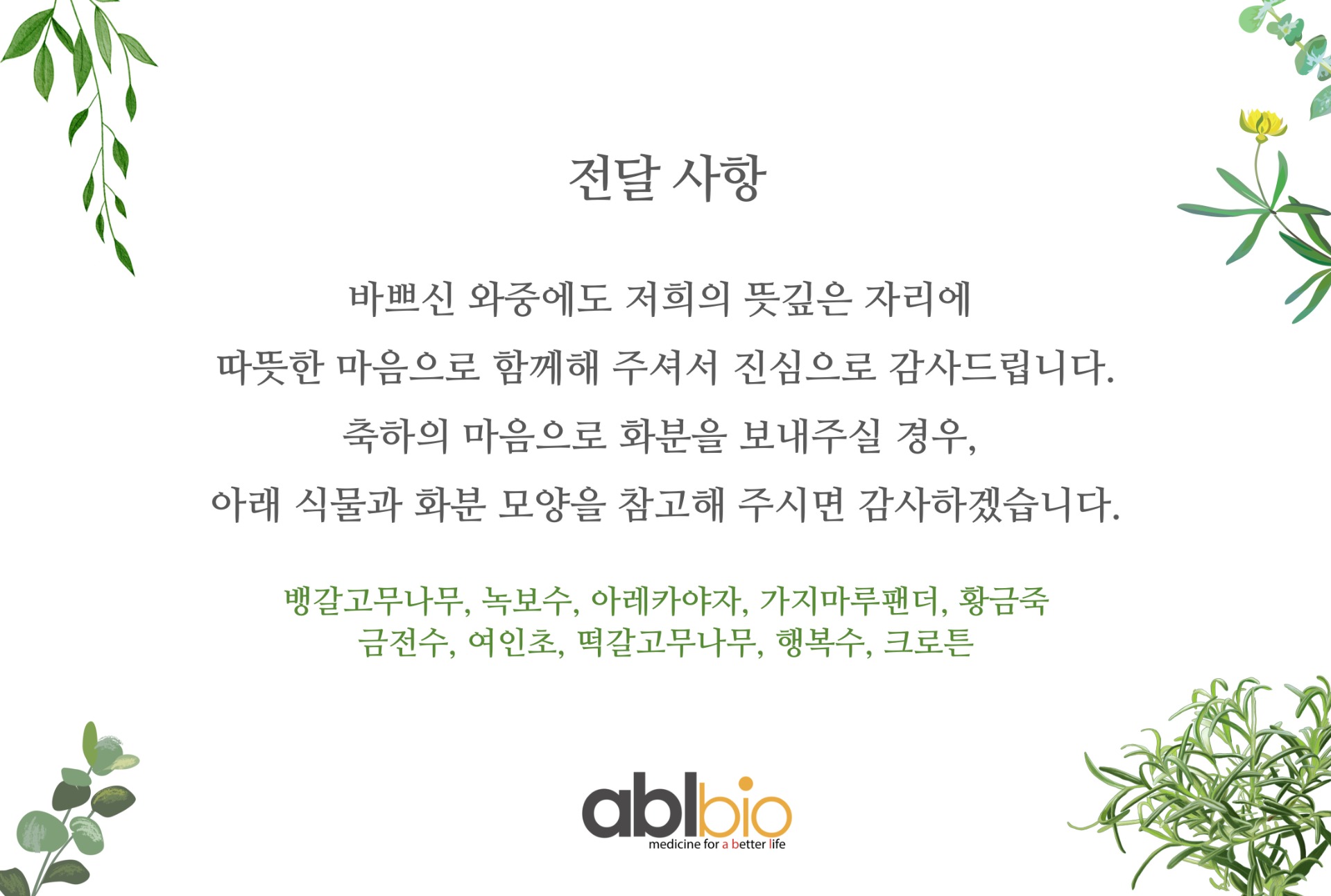 뜻깊은 이 자리에 함께하시어 자리를 빛내 주시기를 부탁드리며, 앞으로도 ABL Bio의 성장과 발전에 변함없는 응원과 격려를 보내 주시기를 바랍니다.