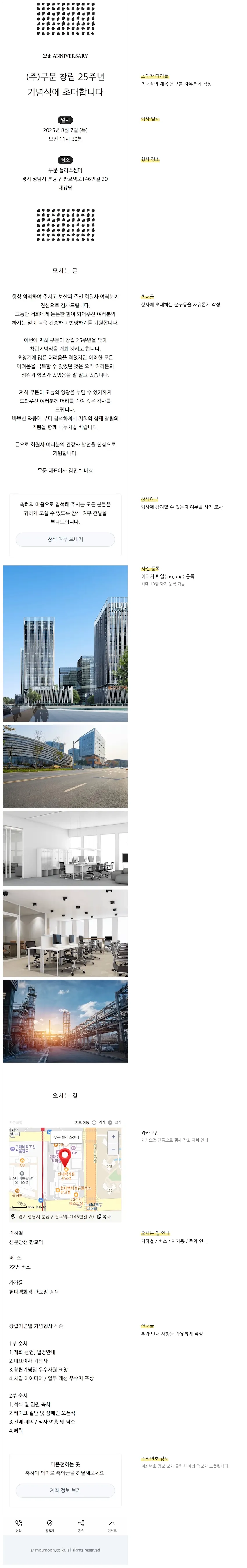 셀프 만들기와 동시에 모바일 초대장이 실시간 자동 완성 됩니다.