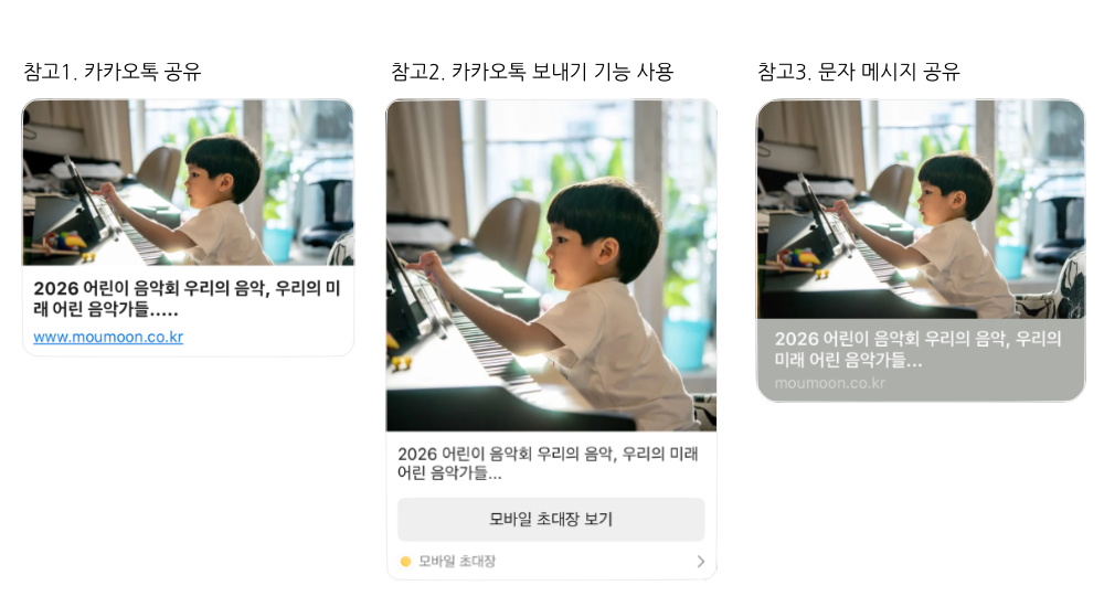 복사한 초대장 링크를 문자 메시지로 보낼 경우 대표 이미지와 타이틀이 사용됩니다.